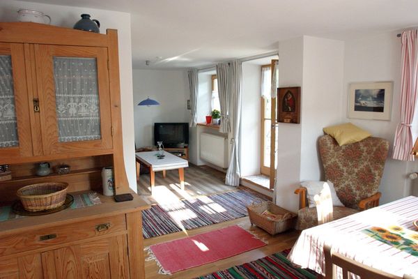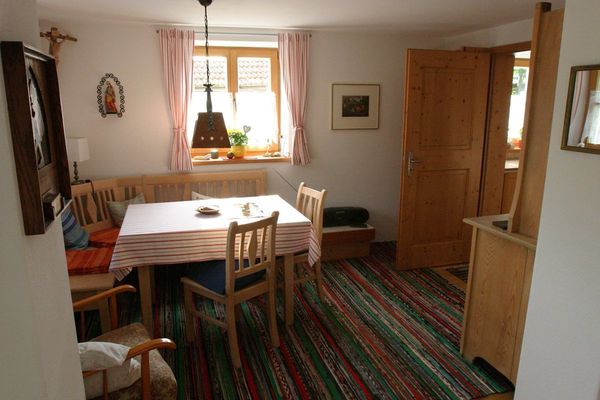 Die Essecke und das Wohnzimmer von der Küche aus gesehen